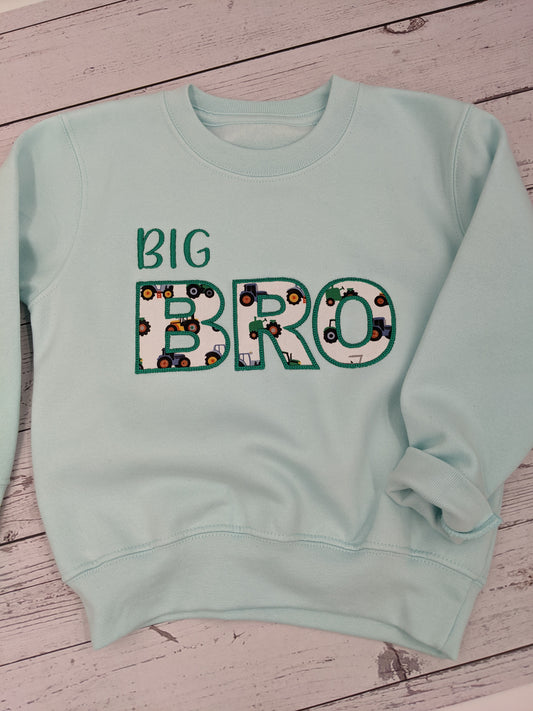 Children's Big Brother Sweatshirt with Tractor fabric | Embroidery
