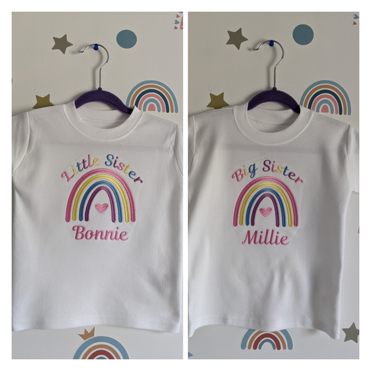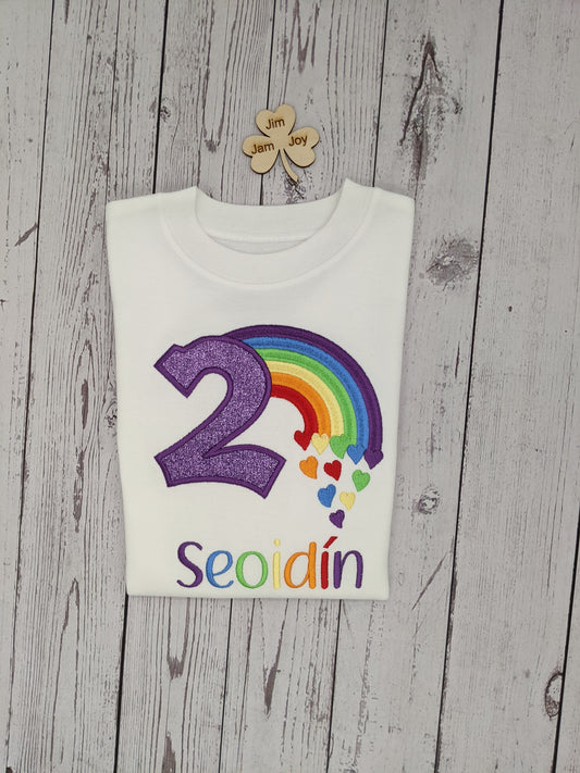 Children Personalised Birthday Tshirt with Rainbow and Hearts - Embroidery