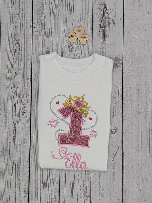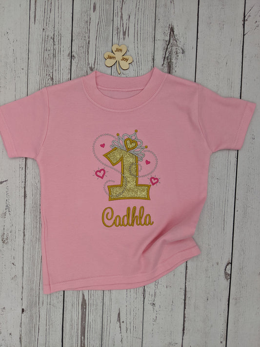 Children Personalised Princess Tiara Birthday Tshirt - Embroidery