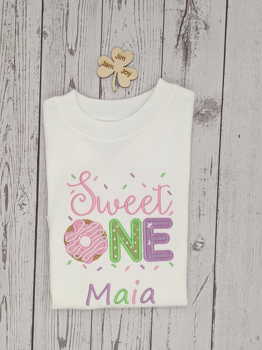 Children Birthday Tshirt Sweet One with Donut - 1st Birthday - Embroidery