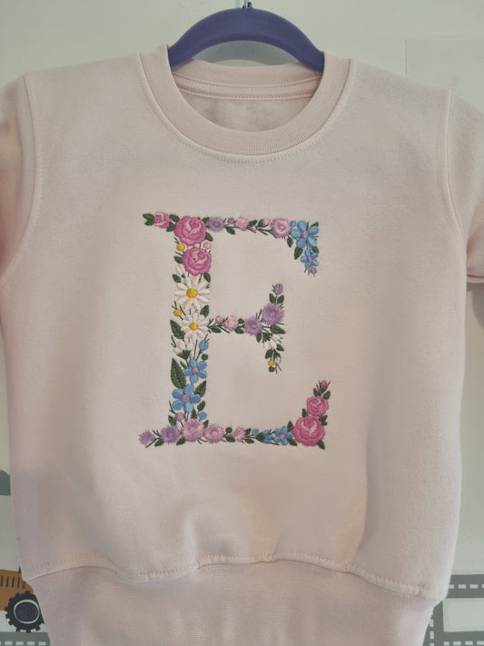 Children Personalised Sweatshirt with Monogram Floral Initial - Embroidery