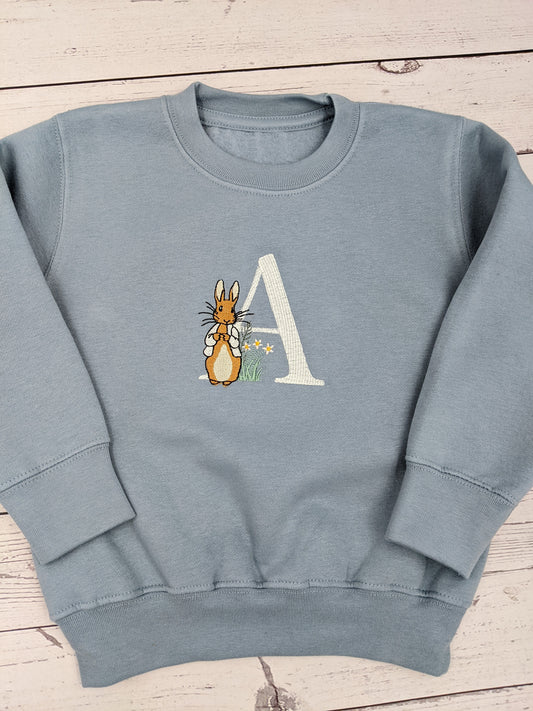 Personnalised Blue or Pink cute Rabbit with Monogram Letter Sweatshirt