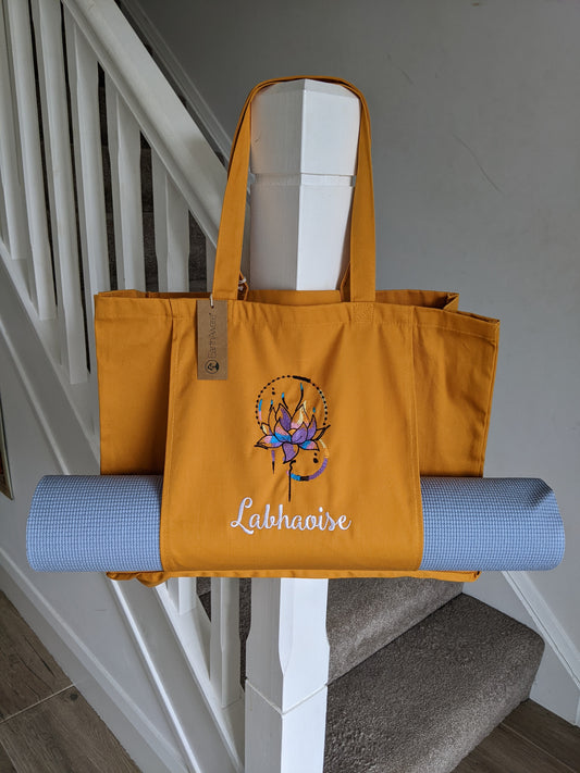 Personalised Yoga Tote Bag Namaste, Yoga Mat Bag with Yoga Mat Pocket, Pilates Mat Bag, Organic Cotton Tote Bag, Large Gym Bag, Embroidery