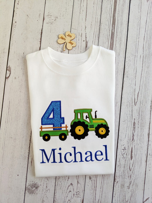 Children Personalised Birthday Sweatshirt with Tractor and Trailer- Embroidery
