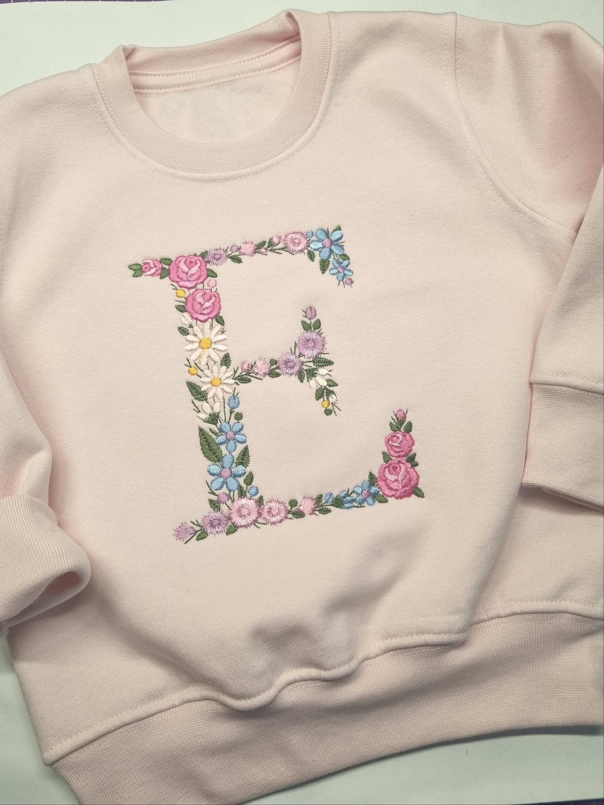 Children Personalised Sweatshirt with Monogram Floral Initial - Embroidery - All AGE