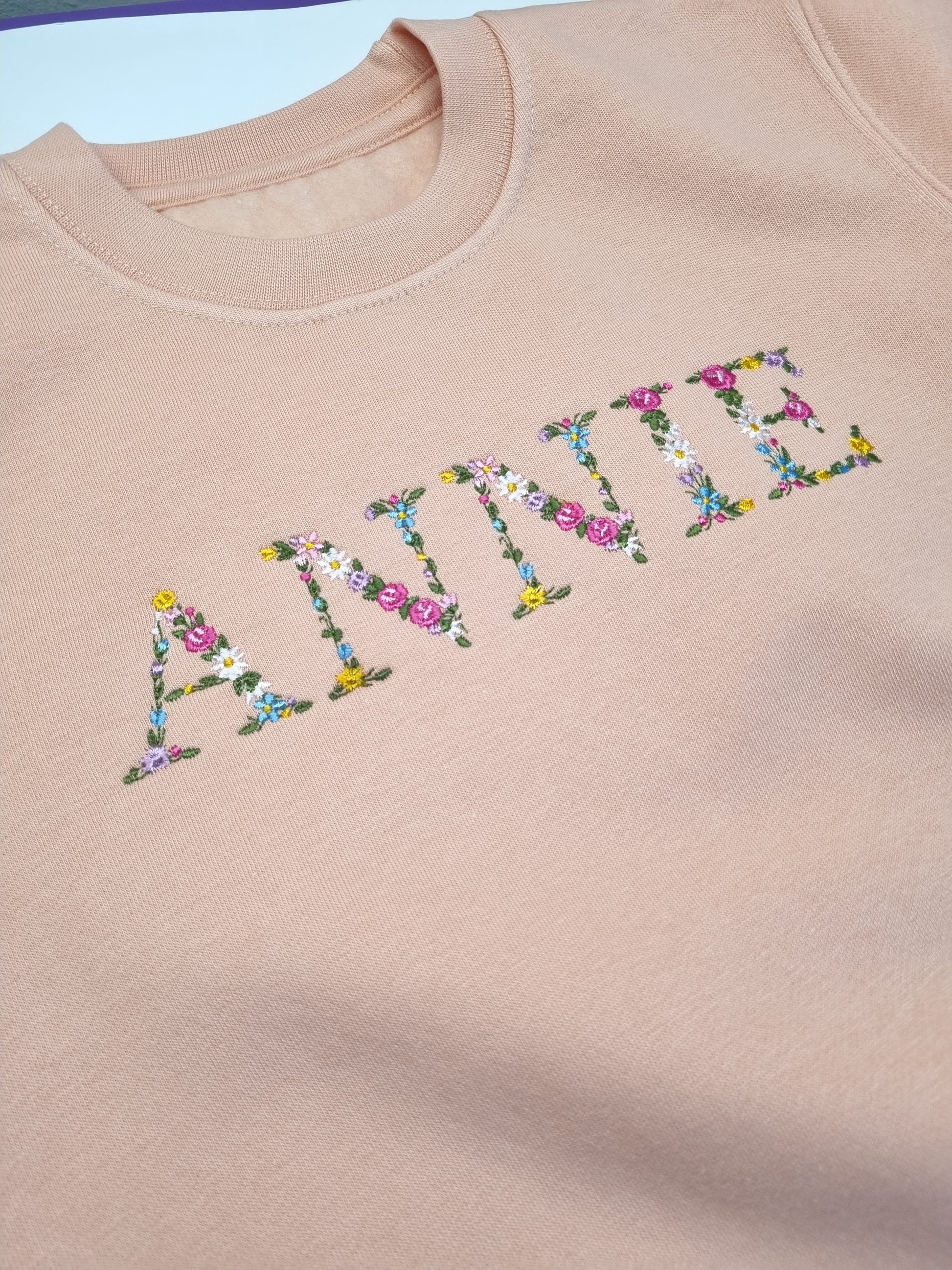 Children Personalised   Sweatshirt  with Floral name - Embroidery