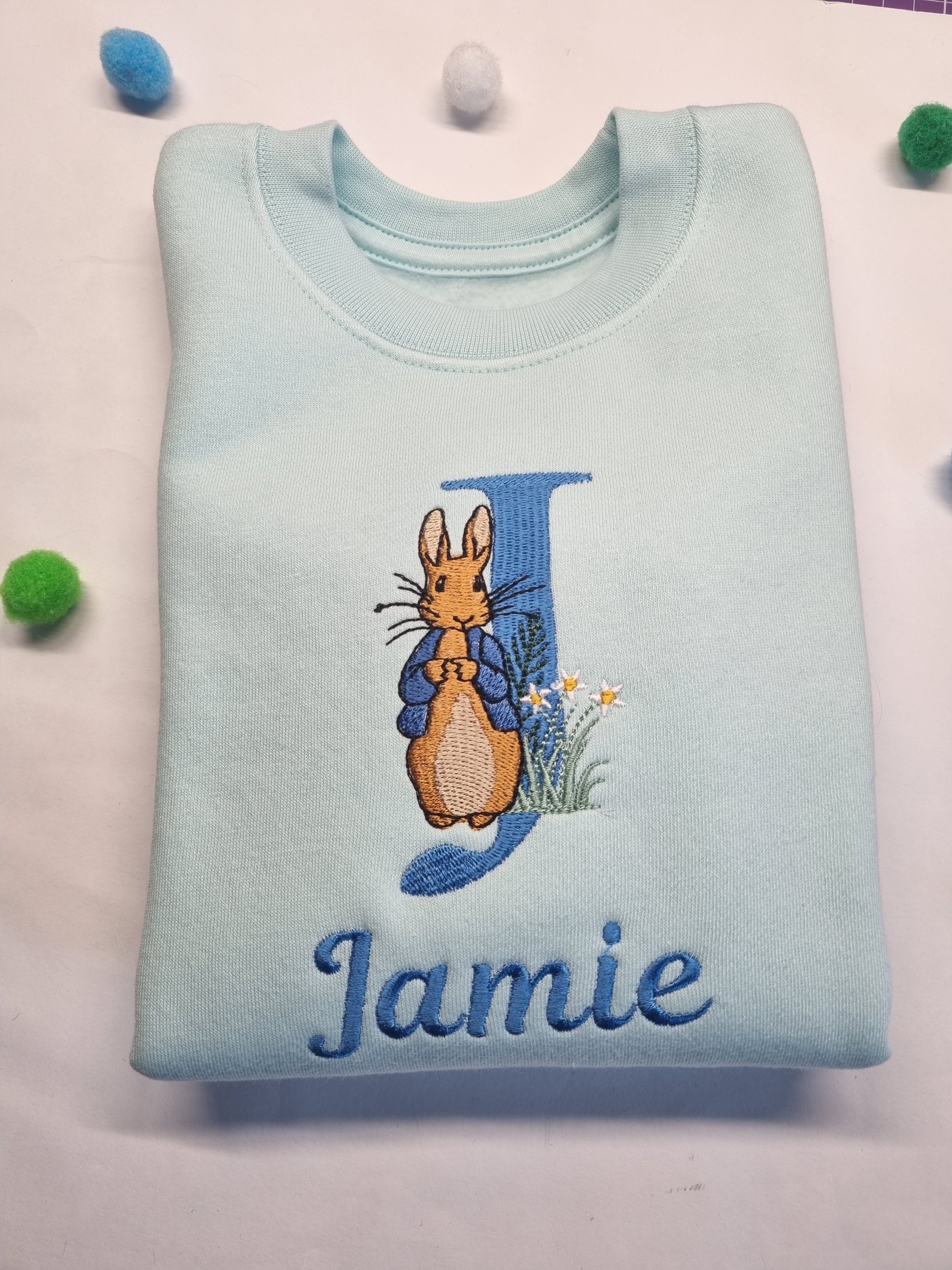 Personnalised Blue or Pink cute Bunny with Monogram Letter Sweatshirt