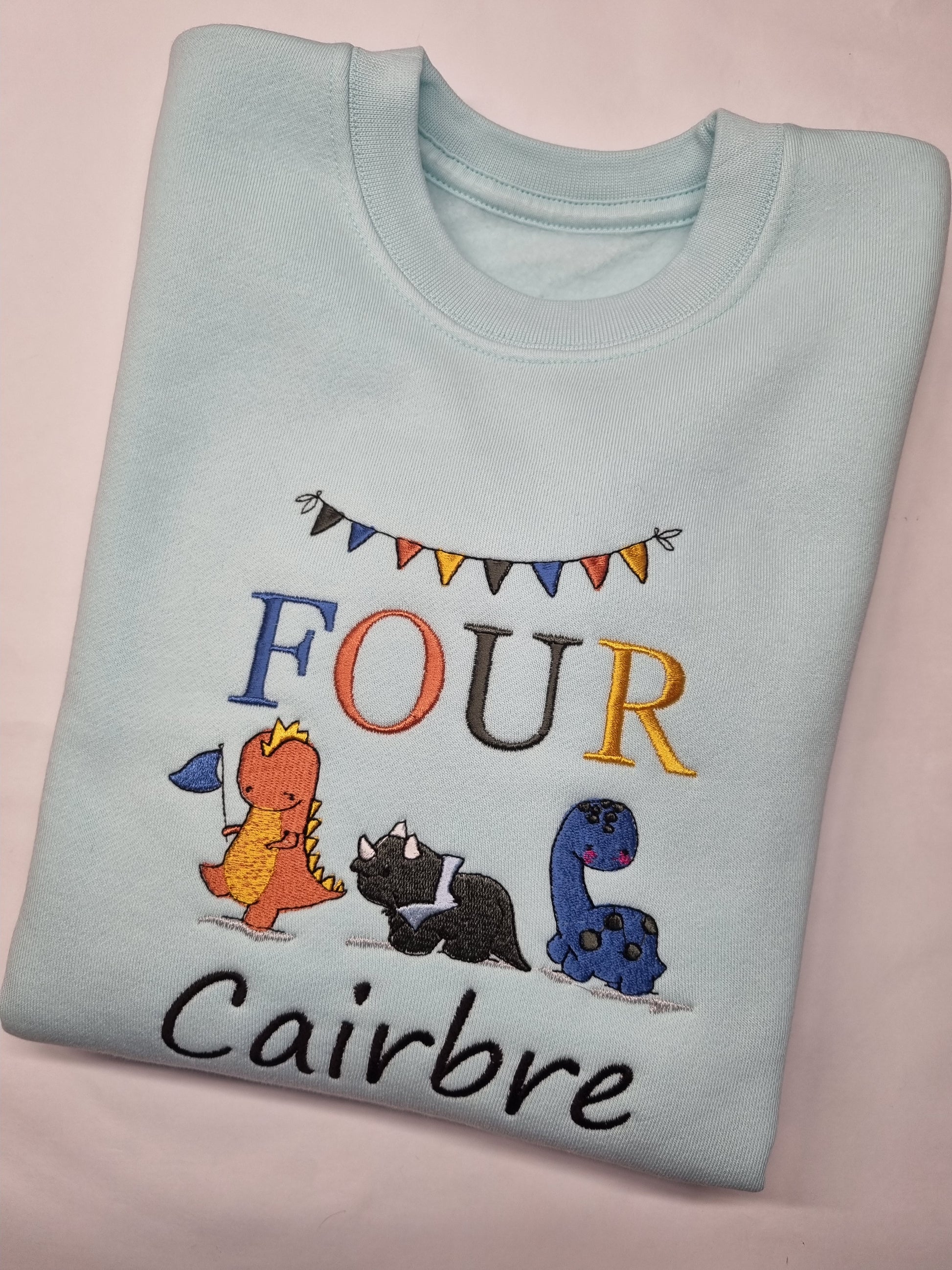 Children Personalised birthday Sweatshirt with trio of dinosaurs Embroidery